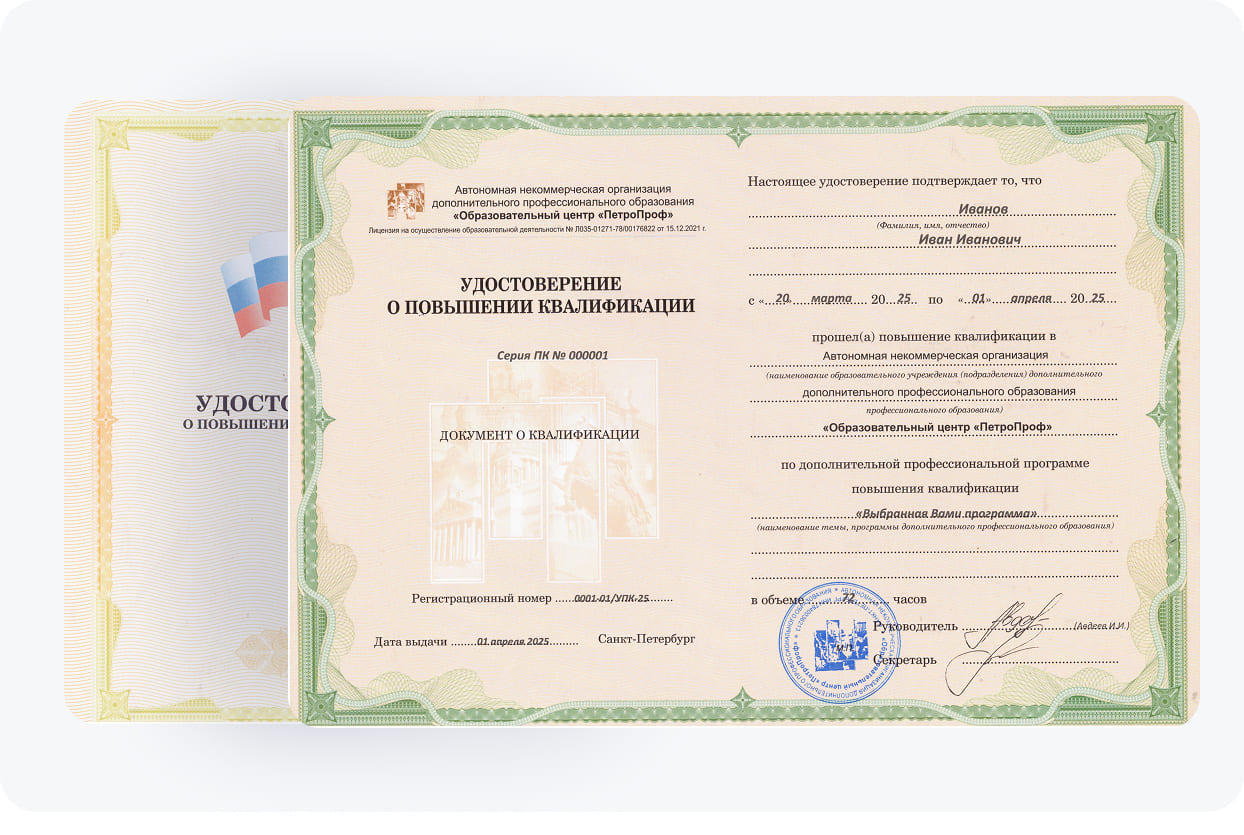 Наши программы повышения квалификации соответствуют всем образовательным стандартам и актуальным требованиям. Они также характеризуются качественным материалом, обширным перечнем важных тем, высокой эффективностью. При возникновении трудных моментов опытные педагоги "ПетроПроф" готовы помочь ученикам быстро и комфортно справиться с ними.